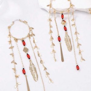 TammyZ Tassel Metal Feather Leaf Hoop Earrings,