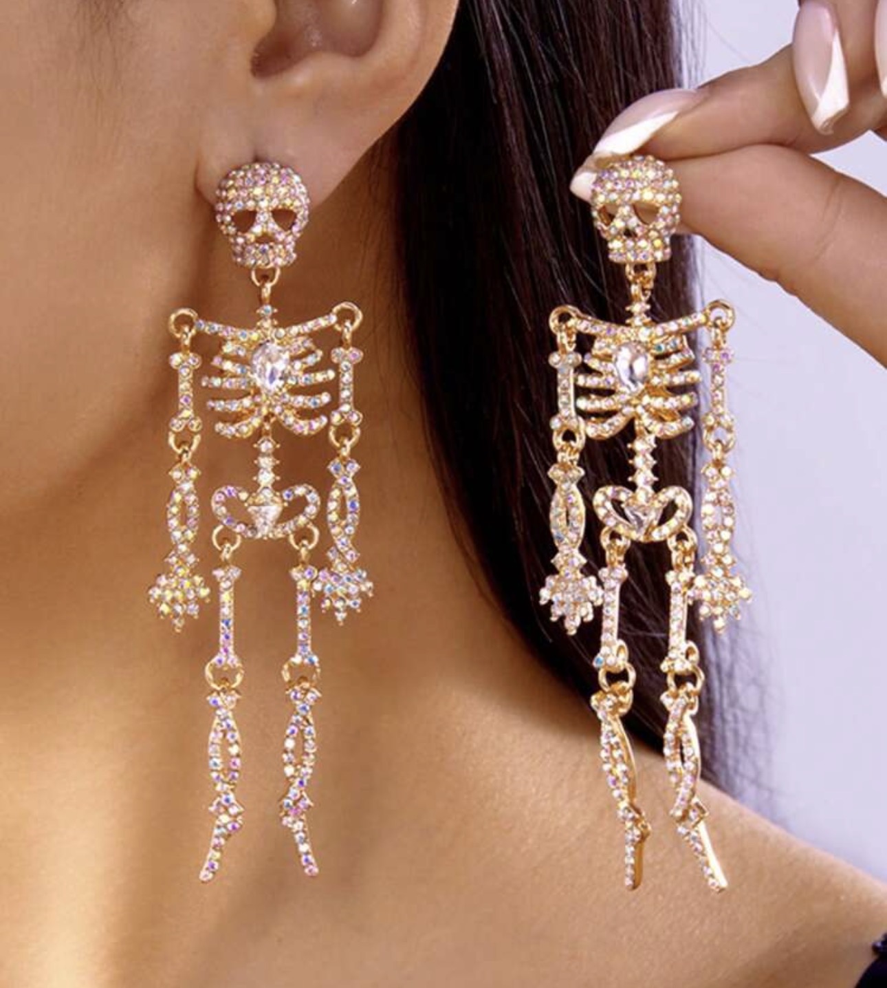 Halloween Irridecent Rhinestone Skull Earrings