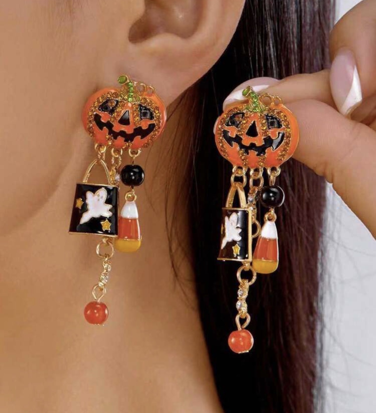 Halloween Rhinestone Pumpkin & Ghost Tassel Earrings