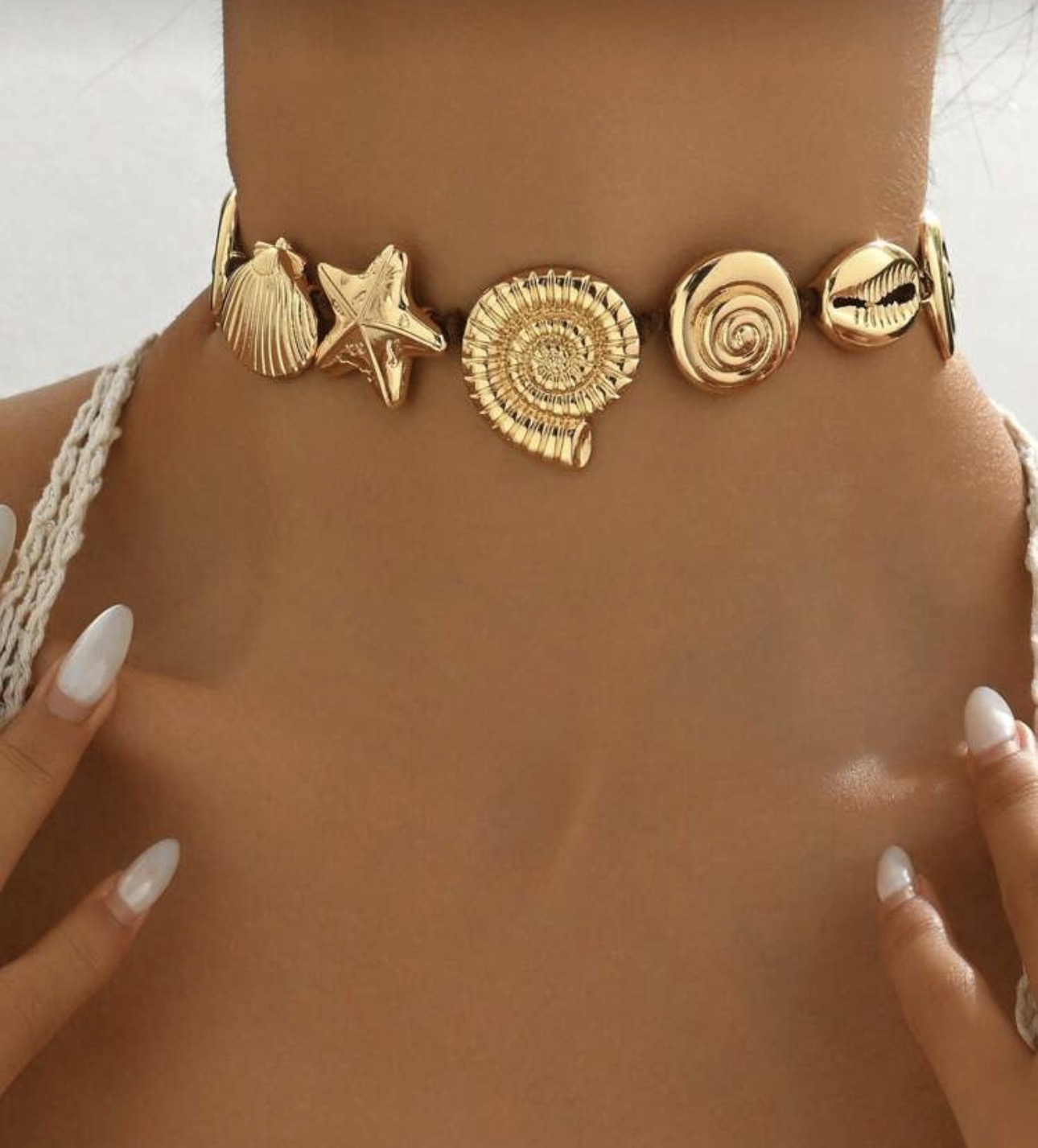 TammyZ Boho Seashell Woven Velvet Cord Necklace